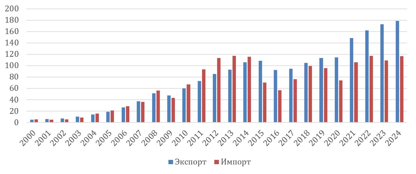 Рисунок . 2. Торговля КНР со странами Африки (2000–2024)