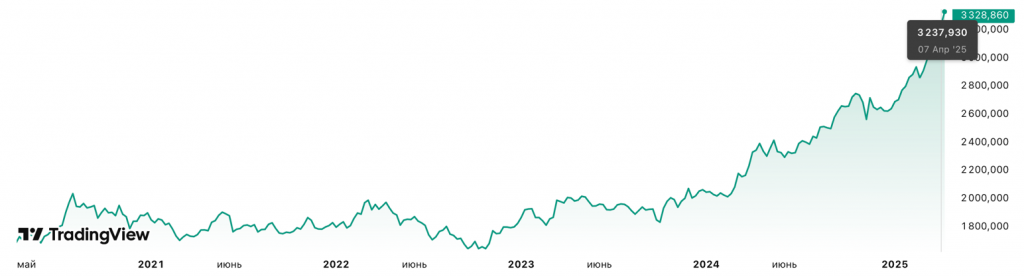 Динамика изменения цены на золото в XXI веке подтвердила его особый статус. Каждый крупный экономический кризис - финансовый кризис 2008 г., европейский долговой кризис 2011 г., пандемия 2020 г. - провоцировал новый виток роста цен. В феврале 2025 года стоимость золота установила номинальный рекорд, превысив 2900$ за унцию. На 16 апреля 2025 г. цена золота составляет 3 238$ за унцию и достигает нового исторического максимума. (Рис. 2)