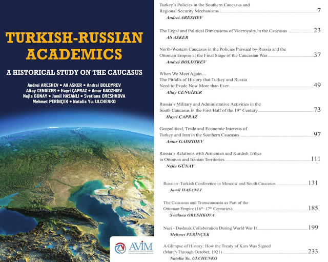 As a result of contacts and meetings with the esteemed head and academicians of the Turkish Studies Programme of the Russian Academy of Sciences, Institute of Oriental Studies, the idea has emerged to compile a book on the work of some distinguished Turkish and Russian historians and academics, particularly on the history of the Caucasus region. In accordance with tis understanding, the Center for Eurasian Studies (AVIM) is pleased to edit this historical academic study in a book.